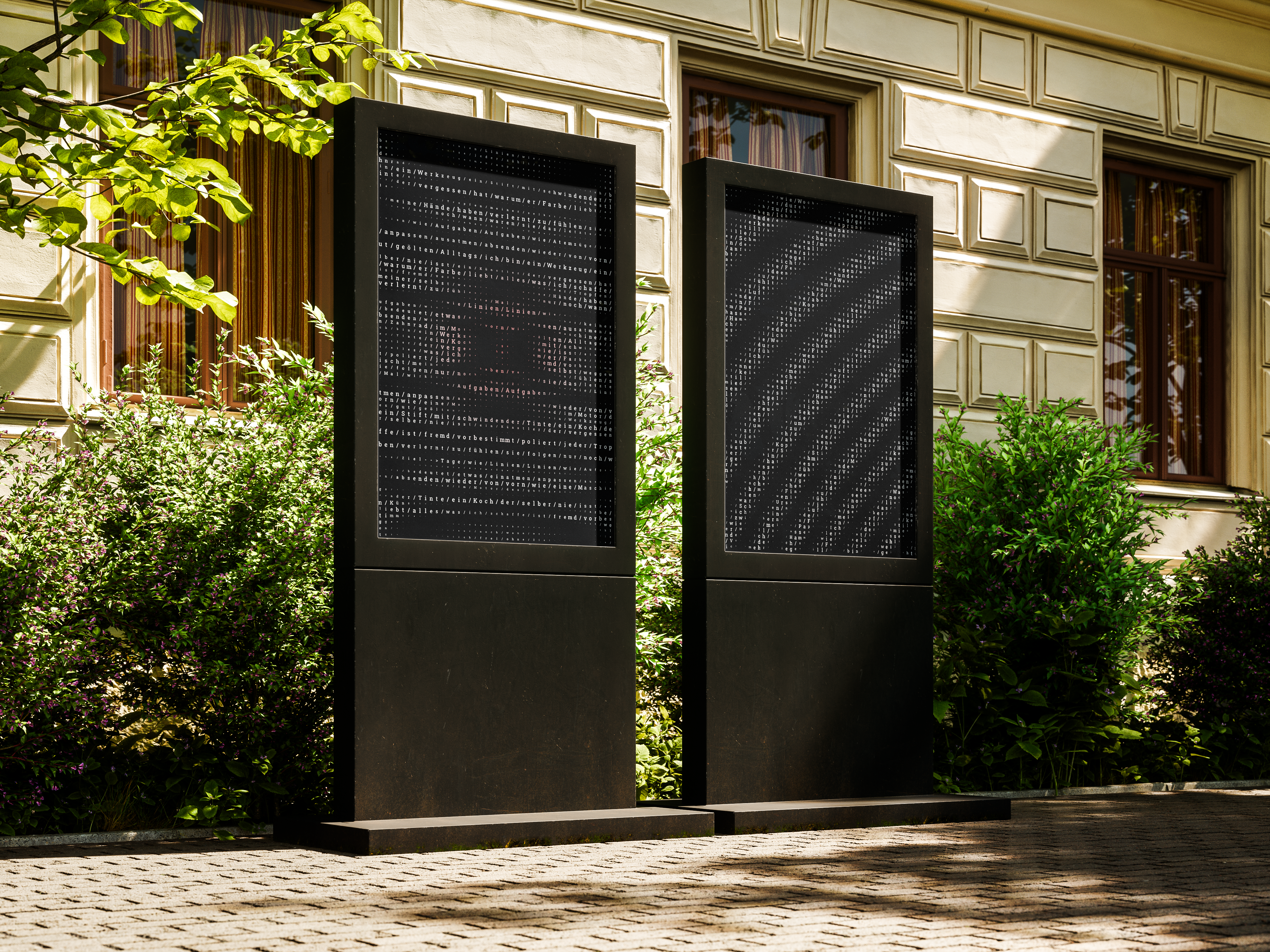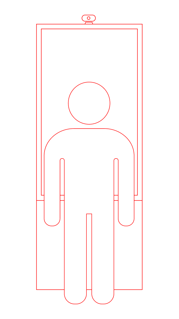 To determine a viewer's distance from the poster, a webcam was mounted on the video stele to capture the area in front of it. When a person entered the frame, MediaPipe's Pose Landmark Detection was used to estimate their distance to the camera and poster. The system tracked 32 anatomical markers (such as joints), each outputting coordinates. Distance was estimated using the eye and nose markers, since these reliably face the camera during viewing, by measuring the 2D distance between them and comparing it to average anatomical values. The larger the distance between markers, the closer the person; the smaller, the further away.