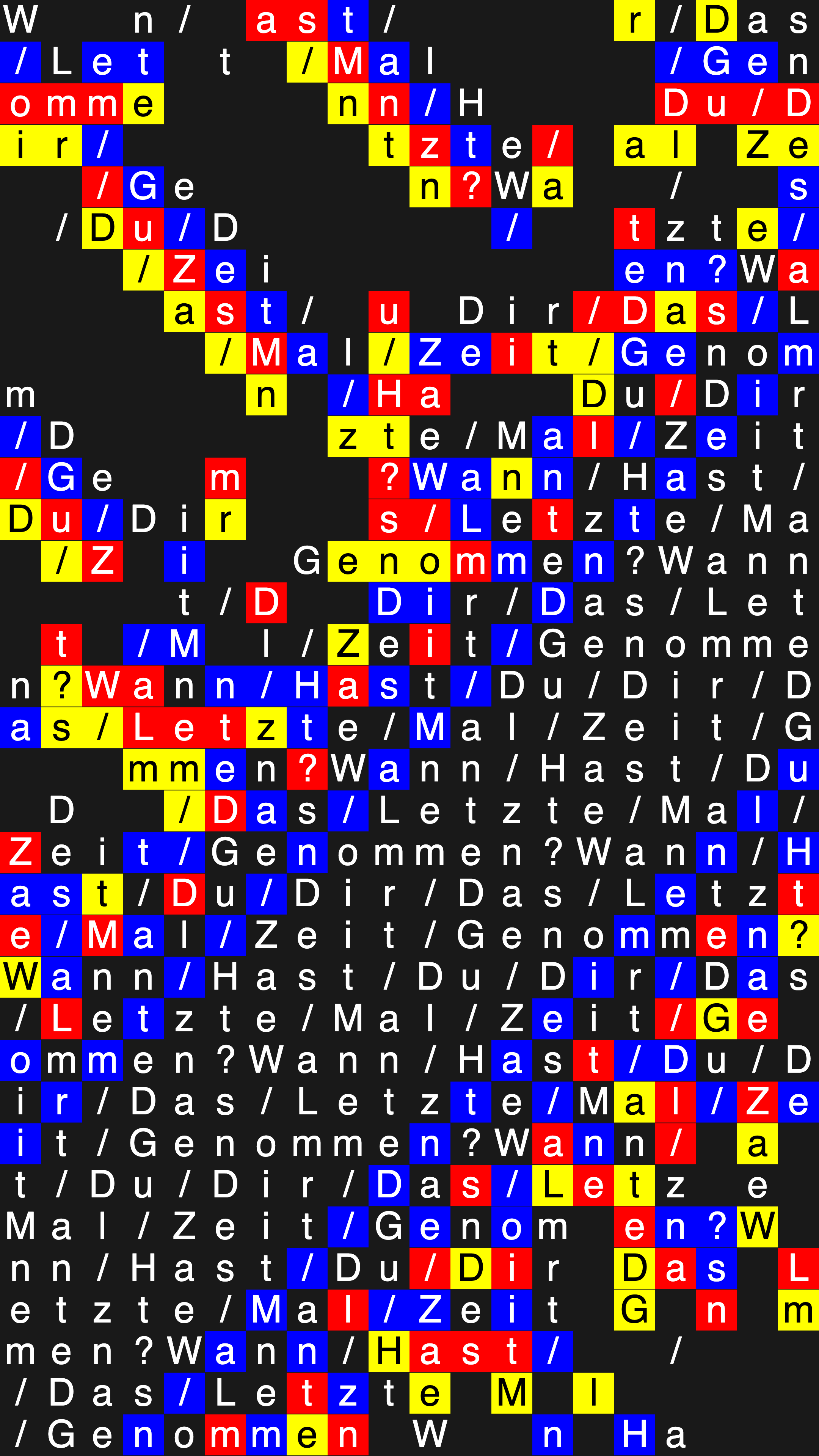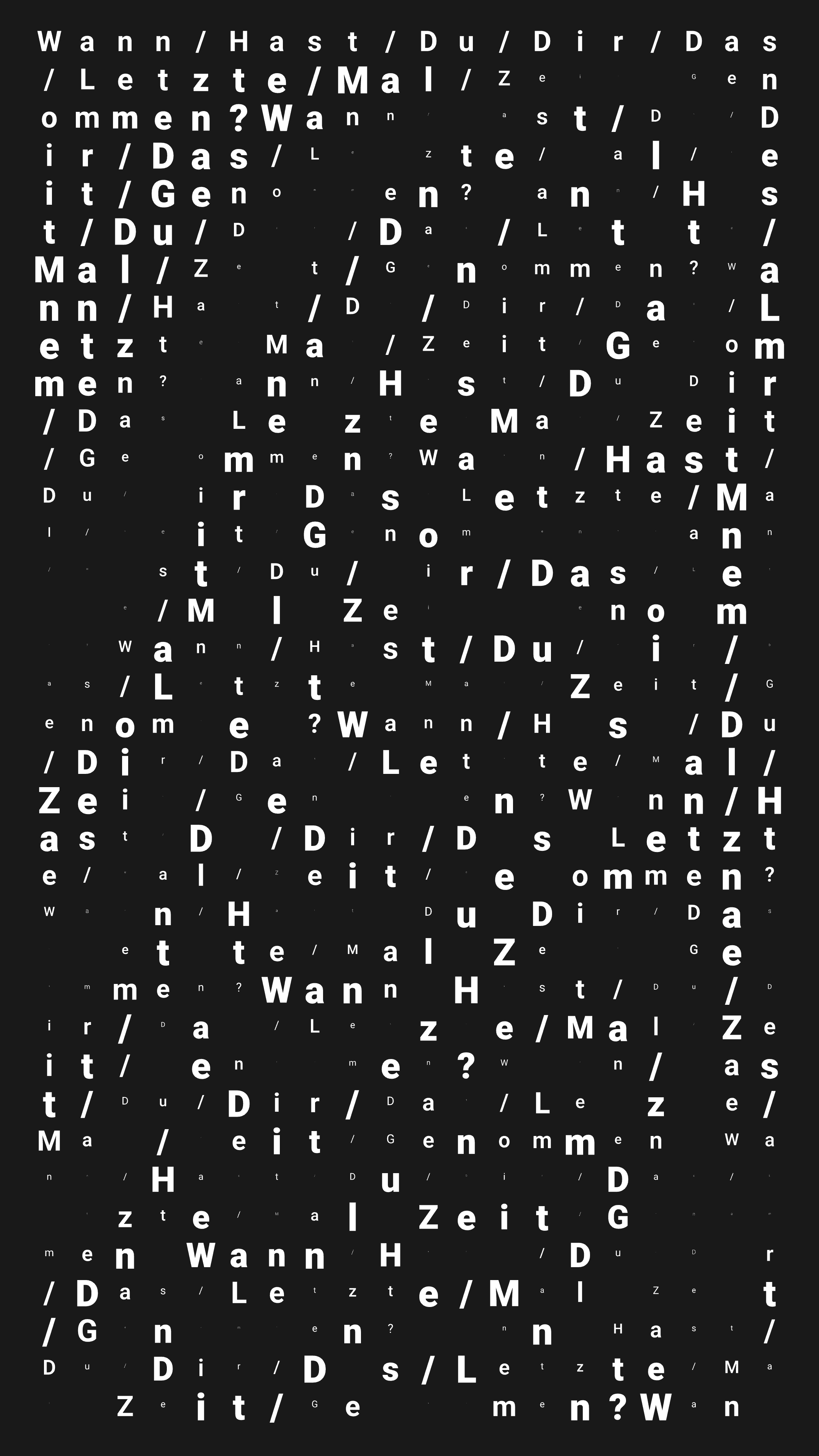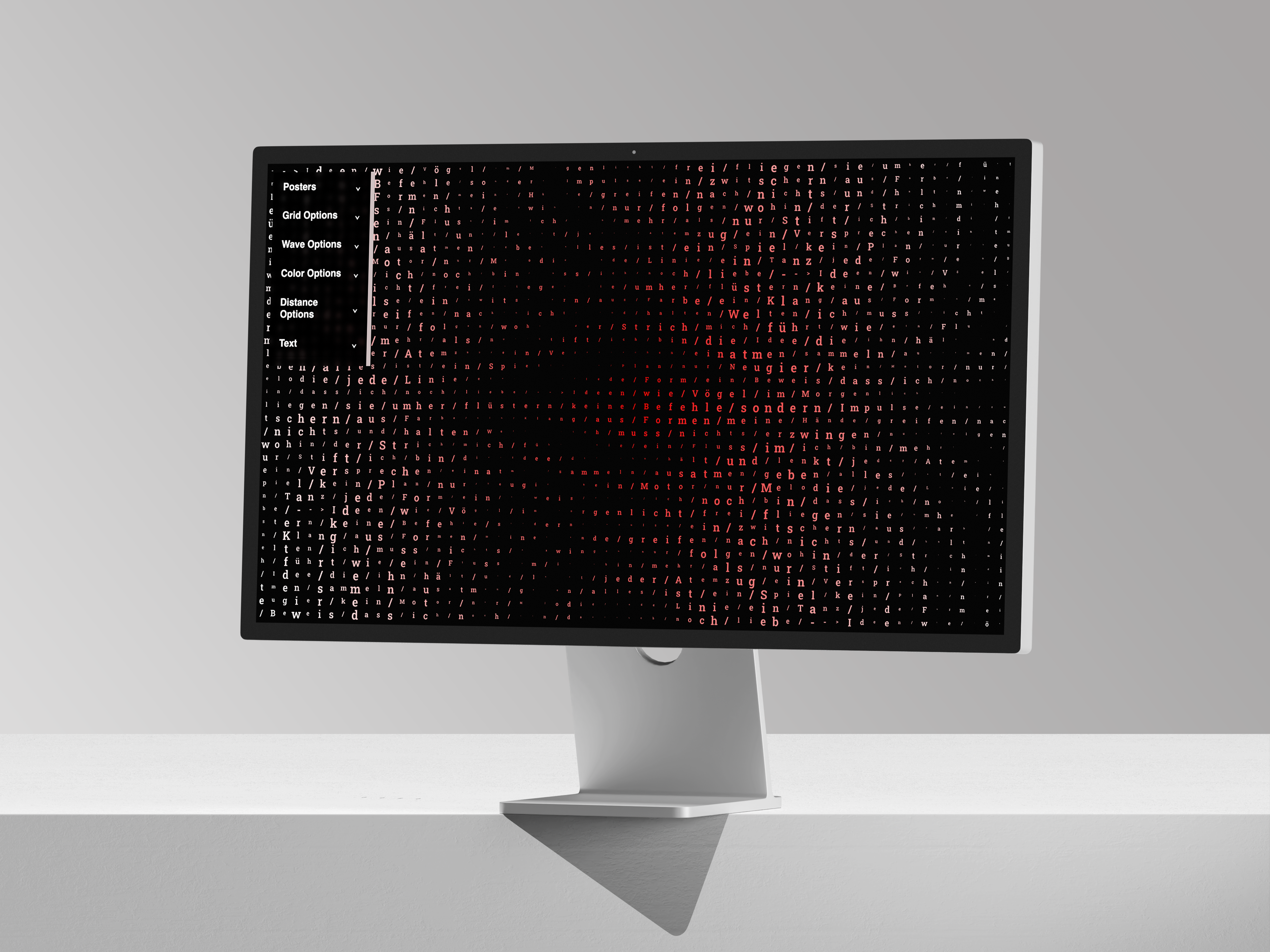 The design process was driven by constant iteration and adaptation, as there was no set end goal or scope, and aesthetics were discovered on the way, evolved, and changed constantly. Evolving from a simple single-word animation to a mirrored version with a larger, more dynamic motion. From there, the mirroring was abandoned in favor of spreading a full sentence across the poster, improving readability. Individual letters were then scaled to create a sense of depth and a portal-like effect, which was ultimately expanded through color and increasingly complex animation.