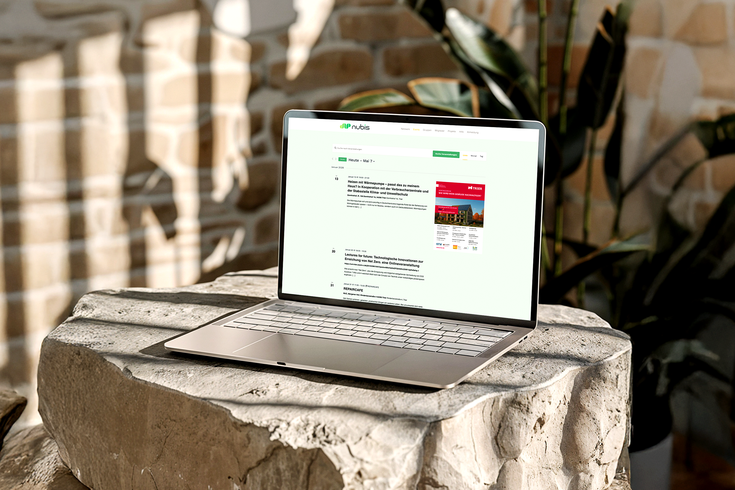 Nubis is a state-funded initiative supported by the federal state of Rhineland-Palatinate and is currently in the process of being established as a sustainability network for the city of Trier. The goal of Nubis is to create a non-commercial central platform that facilitates networking and collaboration among individuals, groups, and initiatives active in the field of sustainability.